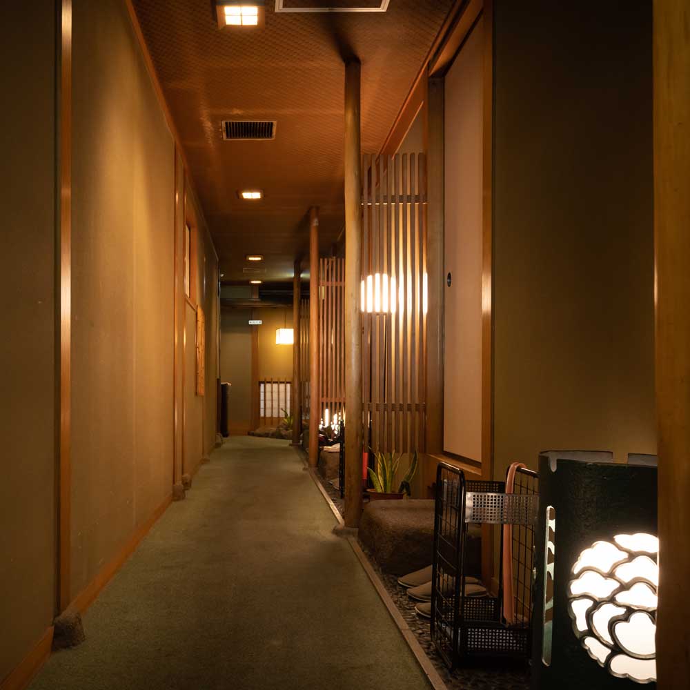 八幸では、最大120名様対応の舞台付大宴会場から堀ごたつ座敷の個室。全席完全個室のお座敷まで、様々なタイプの部屋を用意いたしております。ご会合・ご接待・ご家族のお食事会にご利用下さい。